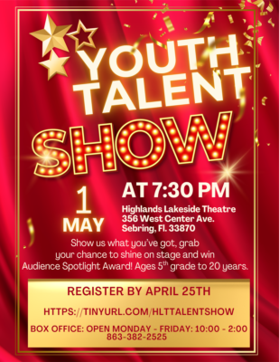 Description: Our young performers are taking the stage for Highlands Lakeside Theatre’s very first Youth Talent Show! Join us as we celebrate their hard work and cheer them on while they share their incredible talents.